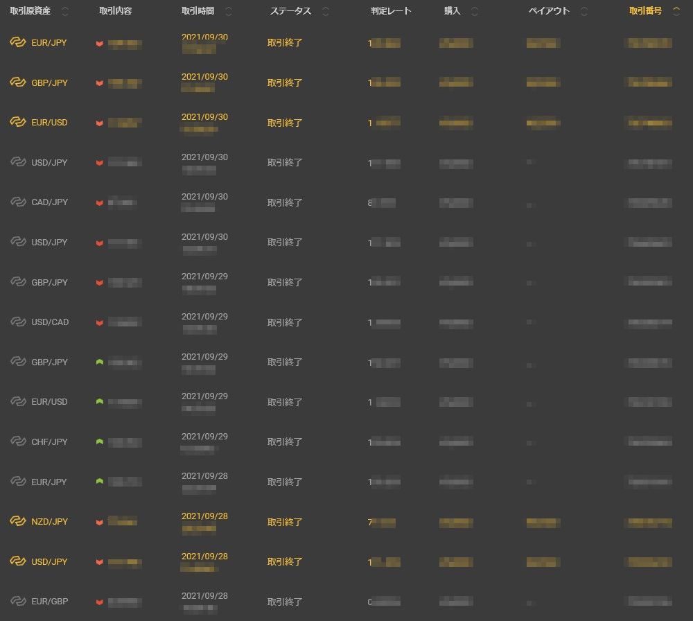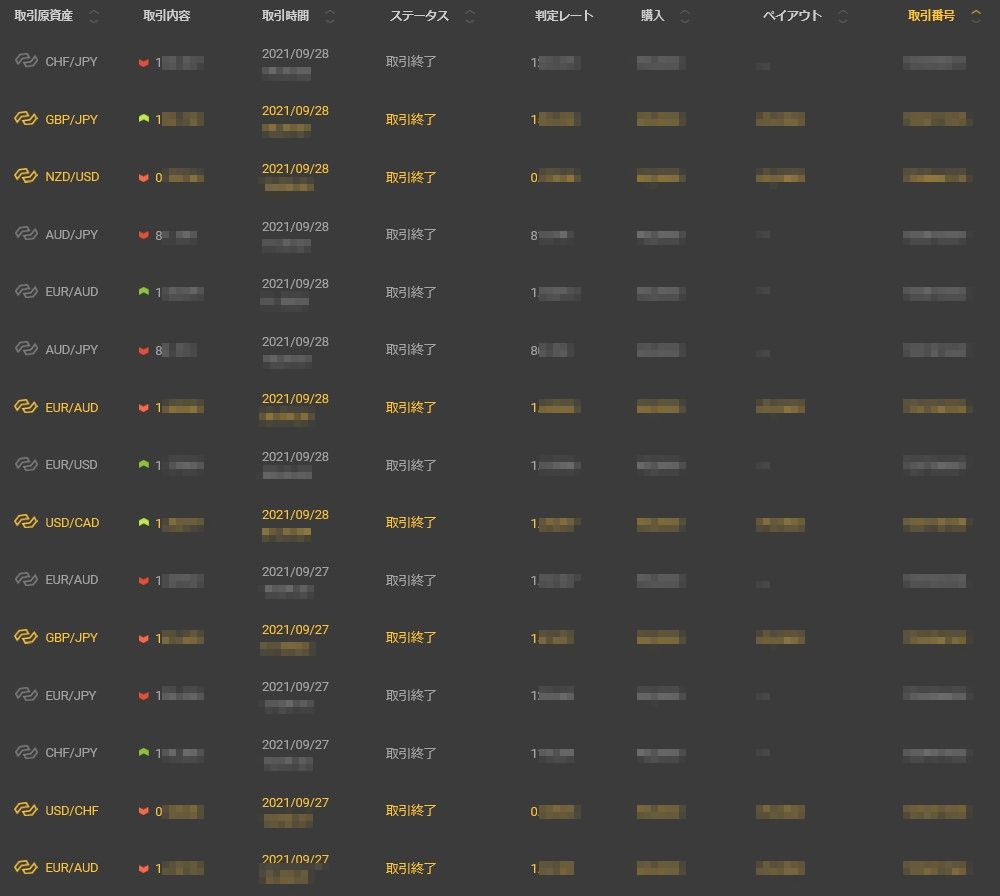 BO自動売買フォワード【Bougie-s】 Bouige-s自動売買 2021/9/27~30 kato 10月 1, 2021 32戦 13勝 19敗 勝率40.62% 10,000円BETで-79,500円 LINE登録者限定でBO勝率インジや 便利系インジ配布していきます。 またFXのインジも今後作成していく予定です。 LINE登録者には利益になるよう考えていきます!! Bougie-s バイナリーオプション フォワード 自動売買